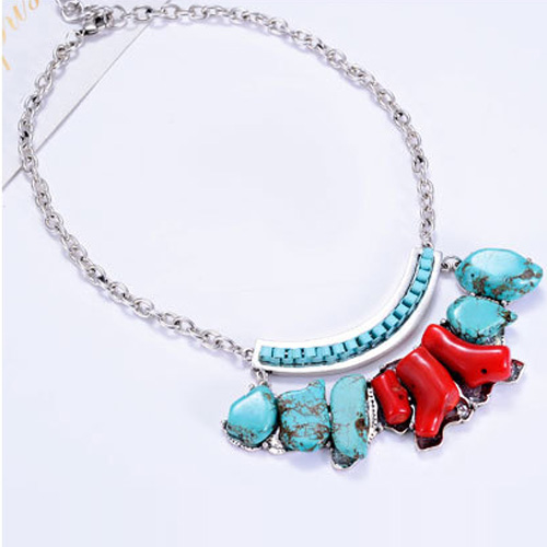 Fashion Turquoise Pendant Alloy Sweater Necklace