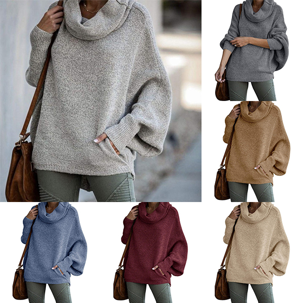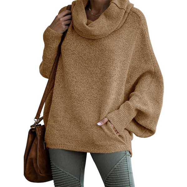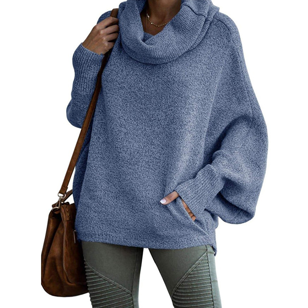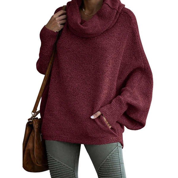 Fashion Turtleneck Batwing Long Sleeve Knitted Sweater