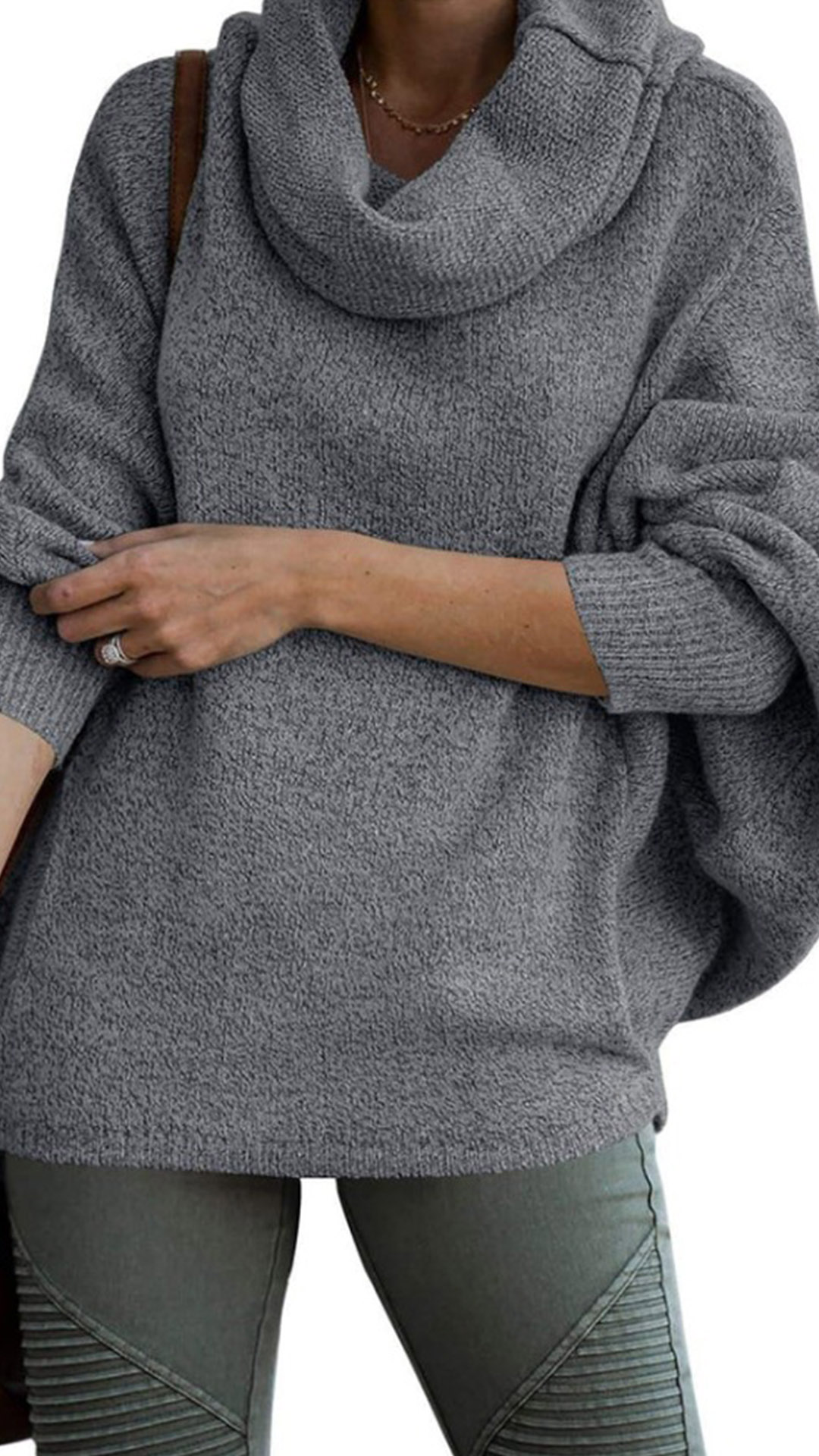 Stay cozy and chic in this fashion Turtleneck Knitted Sweater. The batwing sleeves give a relaxed and trendy look, perfect for a casual yet fashionable outfit. The knitted fabric is soft and comfortable, making it ideal for all-day wear. Whether you pair it with jeans for a laid-back look or dress it up with a skirt and boots, this sweater is versatile and effortlessly stylish.