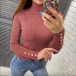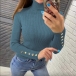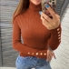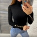 Stay cozy and stylish in this Turtleneck Sweater. The turtleneck design provides warmth and comfort while adding a touch of sophistication to your look. The button detailing on the sleeves adds a unique and stylish element, giving the sweater a modern and trendy vibe. Pair it with your favorite jeans, leggings, or skirt for a casual yet fashionable outfit that will keep you looking chic and stylish all day long.