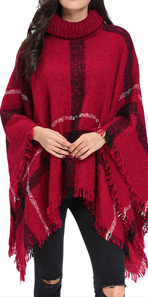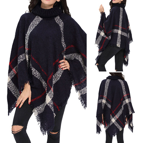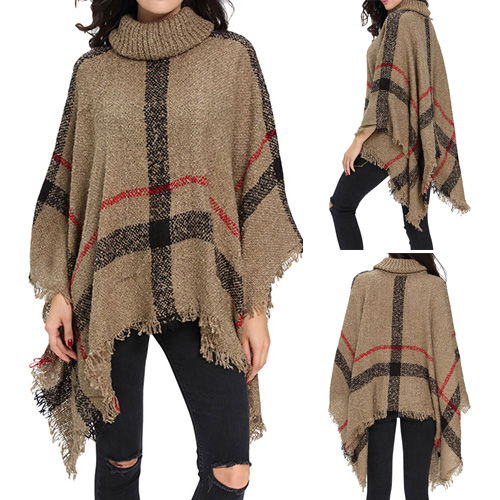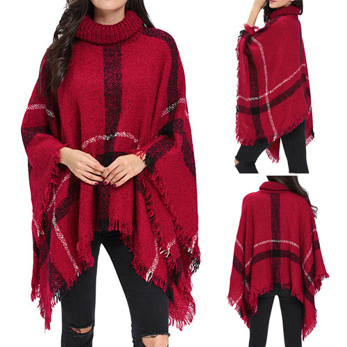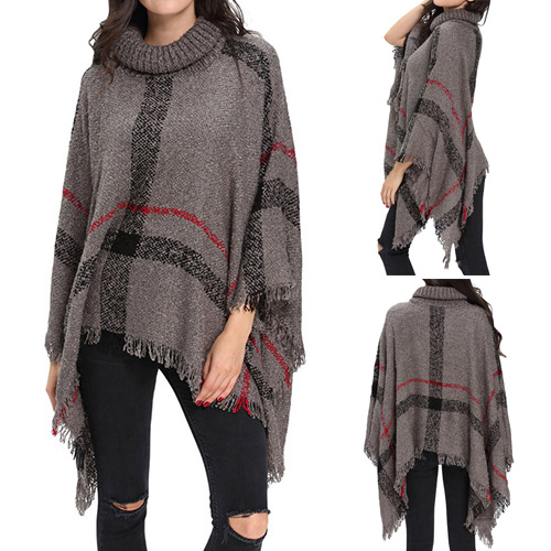 Fashion Turtleneck Lattice Tassel Knit Sweater Shawl