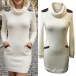 Fashion Turtleneck Long Sleeve Artificial Leather PU Spliced Bodycon Sweater Dress