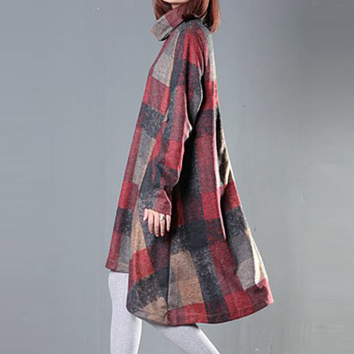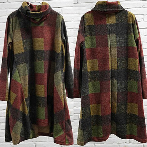 Crafted in a loose-fitting silhouette, accompanied with lattice prints, turtleneck and long sleeve design,