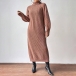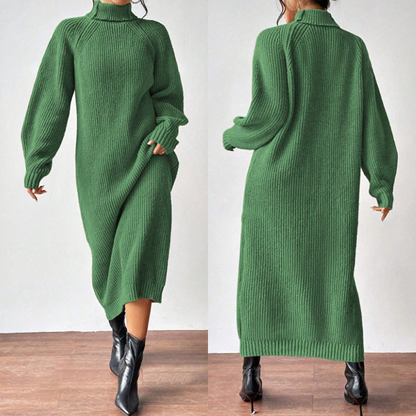 This sweater dress features a stylish turtleneck that adds warmth and sophistication, making it perfect for chilly days.The relaxed fit and elegant design create a flattering silhouette that suits various body types, making it a must-have for any wardrobe. Ideal for casual outings, work, or even date nights, this versatile sweater dress can be styled with boots, heels, or sneakers for a chic ensemble.
