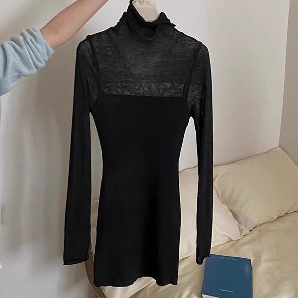 Fashion Turtleneck Long Sleeve Ribbed Bodycon Dress