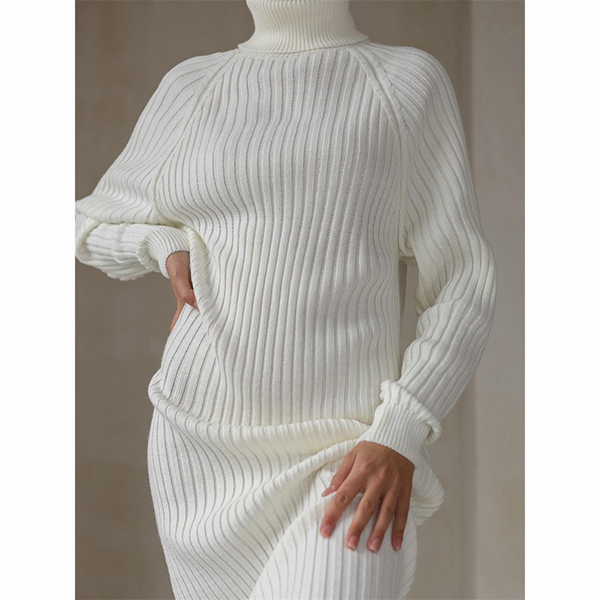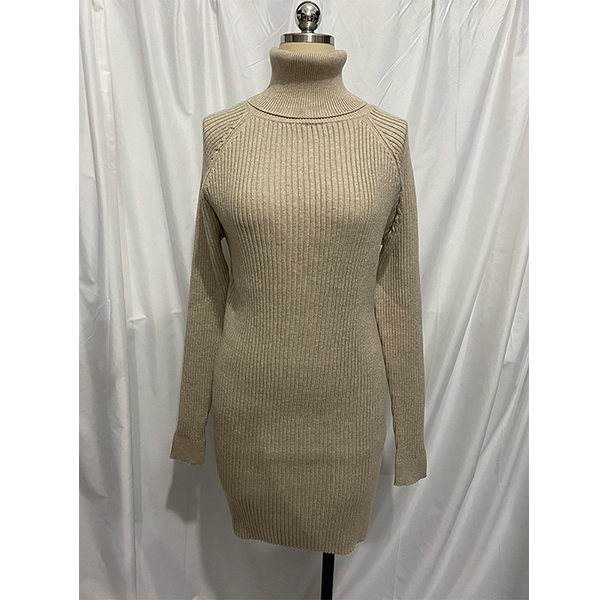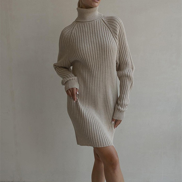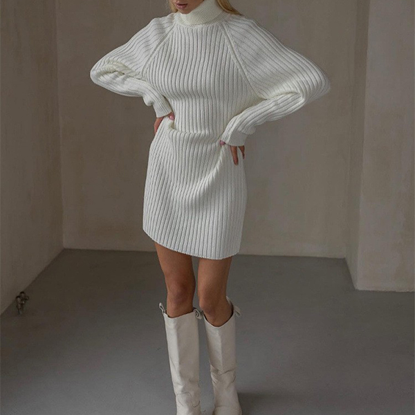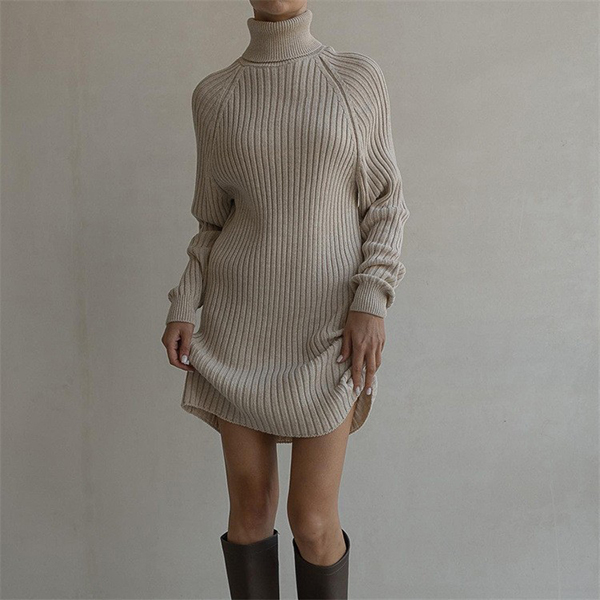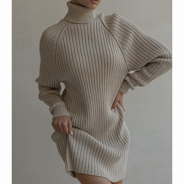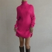 Fashion Turtleneck Long Sleeve Ribbed Sweater Dress