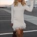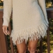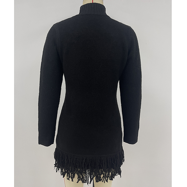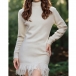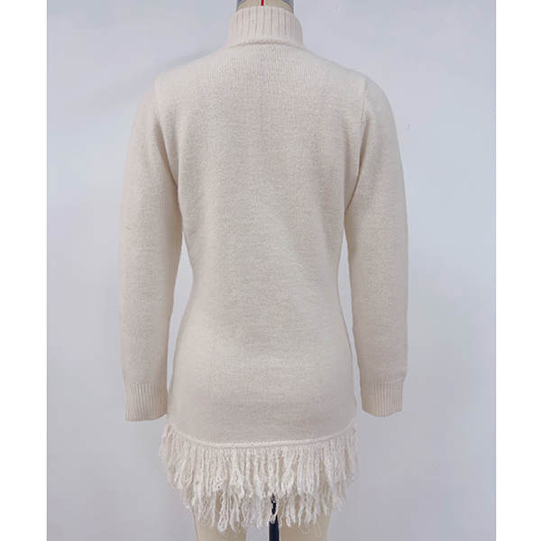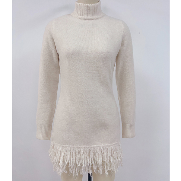 Fashion Turtleneck Long Sleeve Tassle Hemline Bodycon Sweater Dress