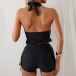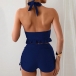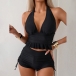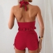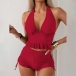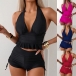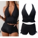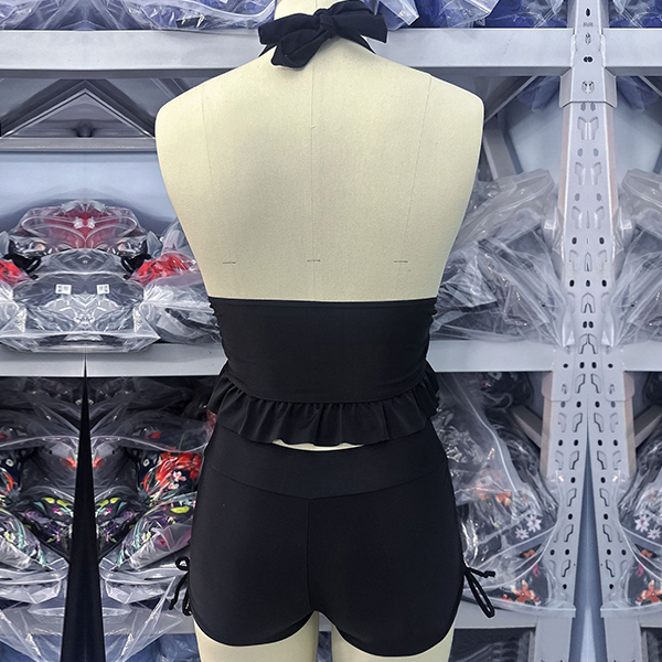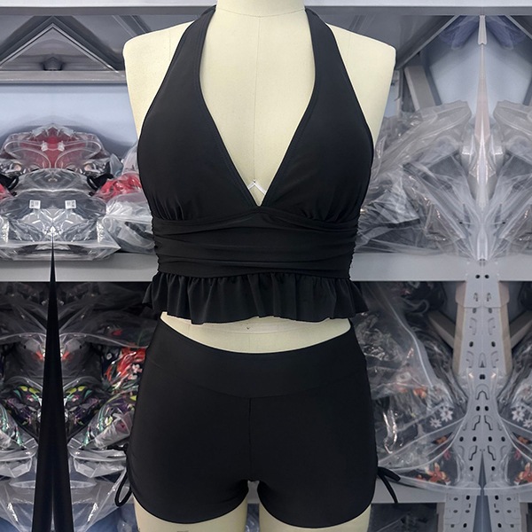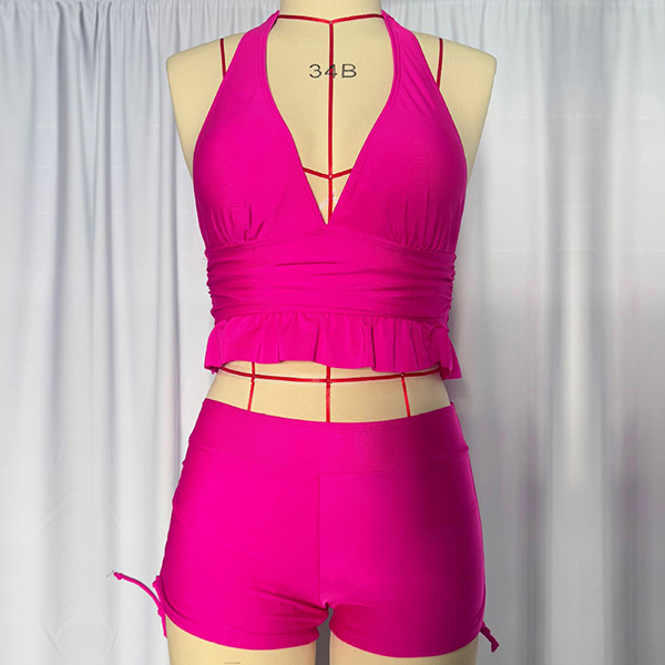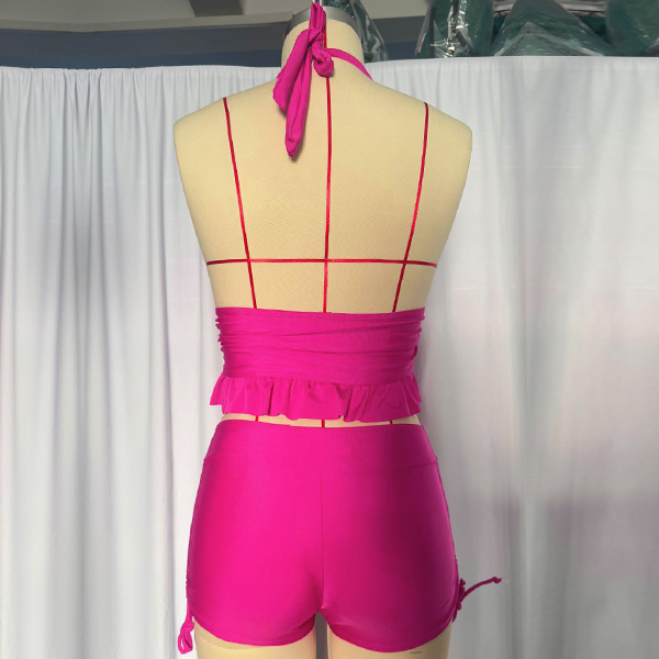 Get ready for summer with this fashion two-piece bikini set! This set features a halterneck ruffle swimming top, adding a touch of playful elegance, and side drawstring swimming bottoms for an adjustable and flattering fit. Perfect for beach days or poolside lounging.