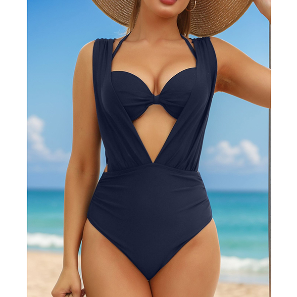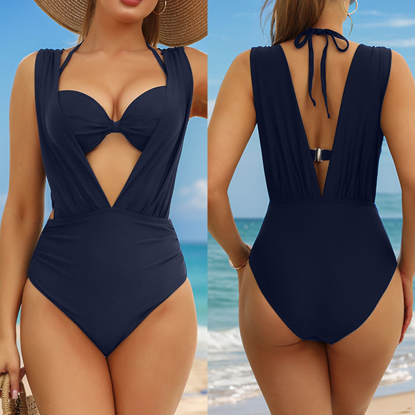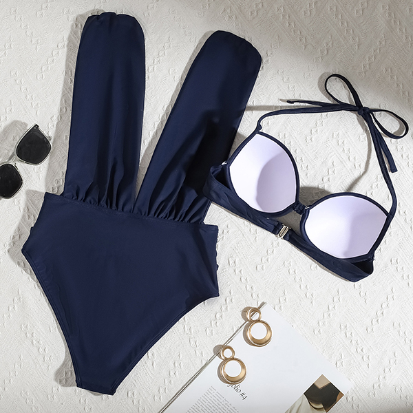 Fashion Two-piece Bikini Set Consist of Halterneck Swimming Top and V-neck Swimming Bodysuit