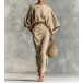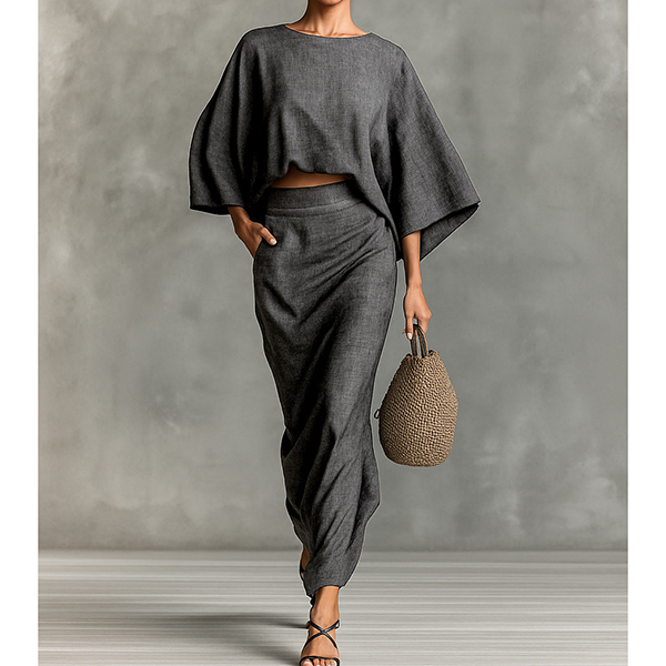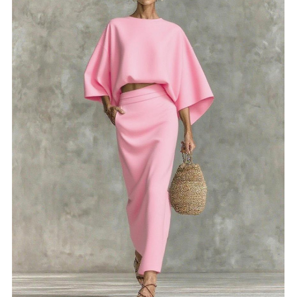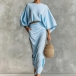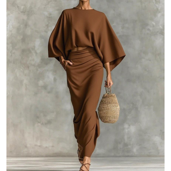 Fashion Two-piece Set Consist of Batwing Elbow Sleeve Crop Top and Ruched Maxi Skirt