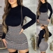 Fashion Two-piece Set Consist of Black Shirt and Plaid Suspender Skirt