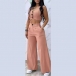 This fashion two-piece set consists of a crop top and wide-leg pants, offering a stylish and coordinated look that is both trendy and versatile.