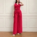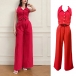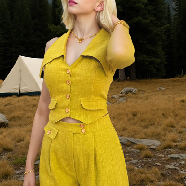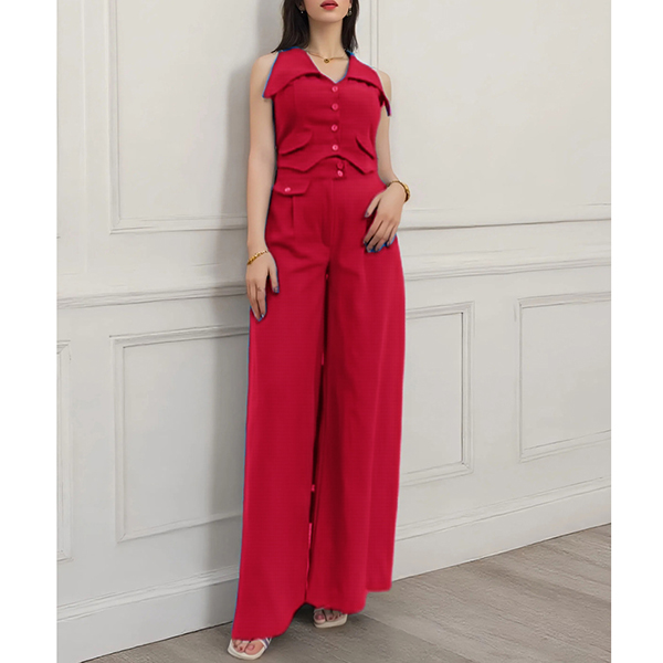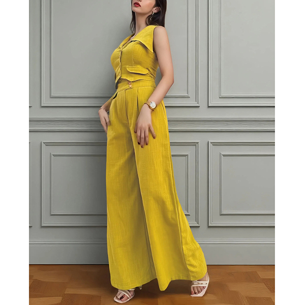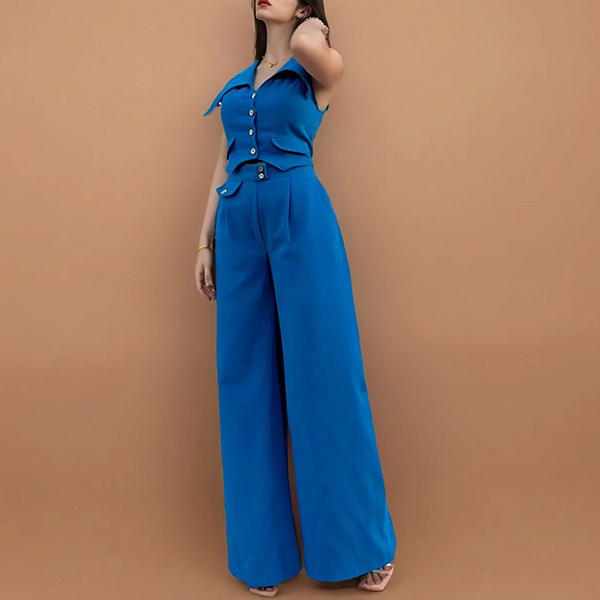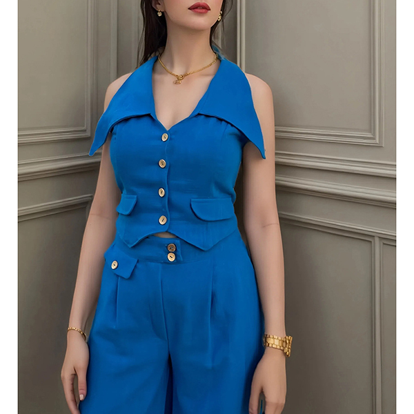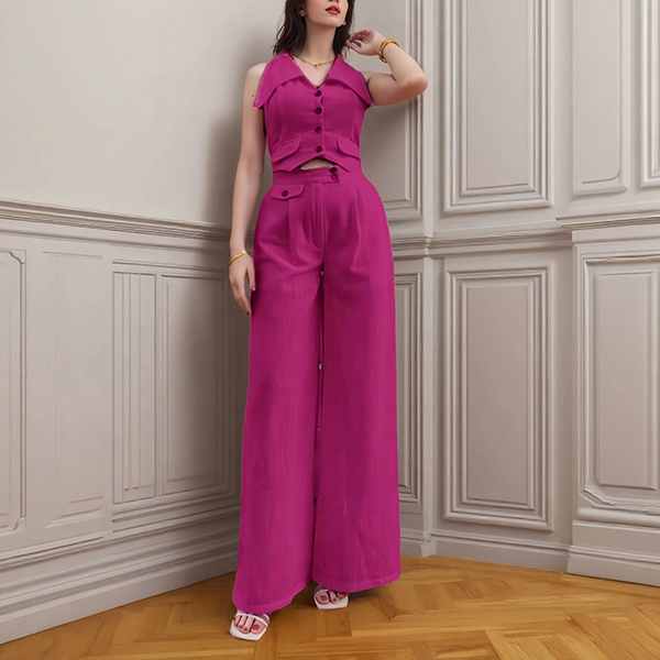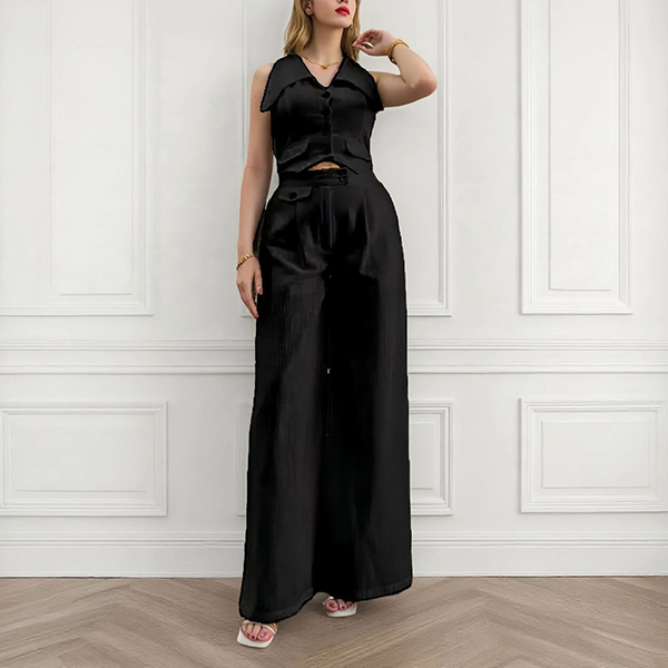 This two-piece set can be worn together for a chic and cohesive look, or styled separately with other pieces in your wardrobe for a variety of outfits. The crop vest features a modern and youthful silhouette, perfect for showing off your midriff or layering over a fitted top. The straight-cut pants provide a sleek and tailored fit, creating a polished and put-together outfit. s