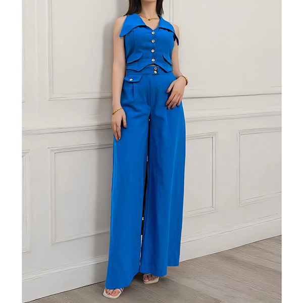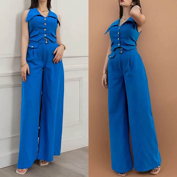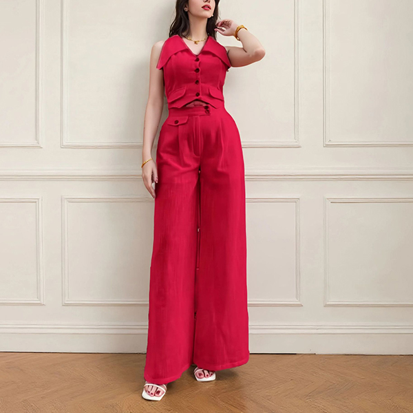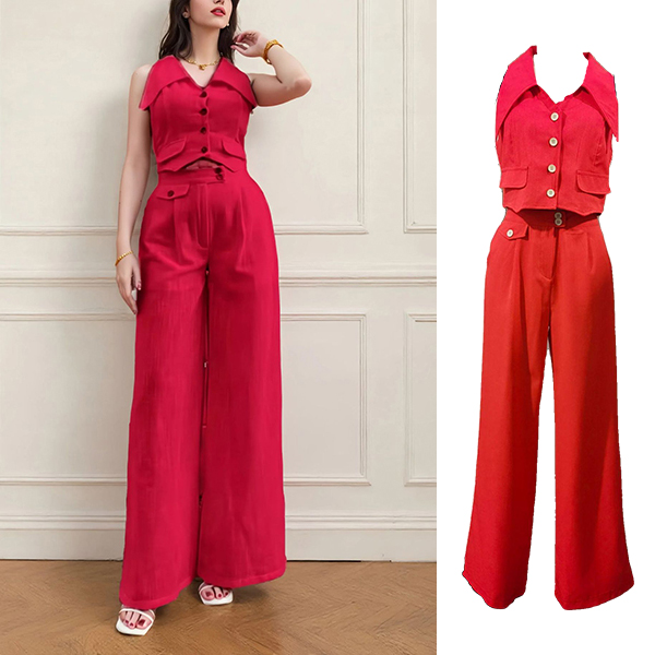 Fashion Two-piece Set Consist of Crop Vest and Straight-cut Pants