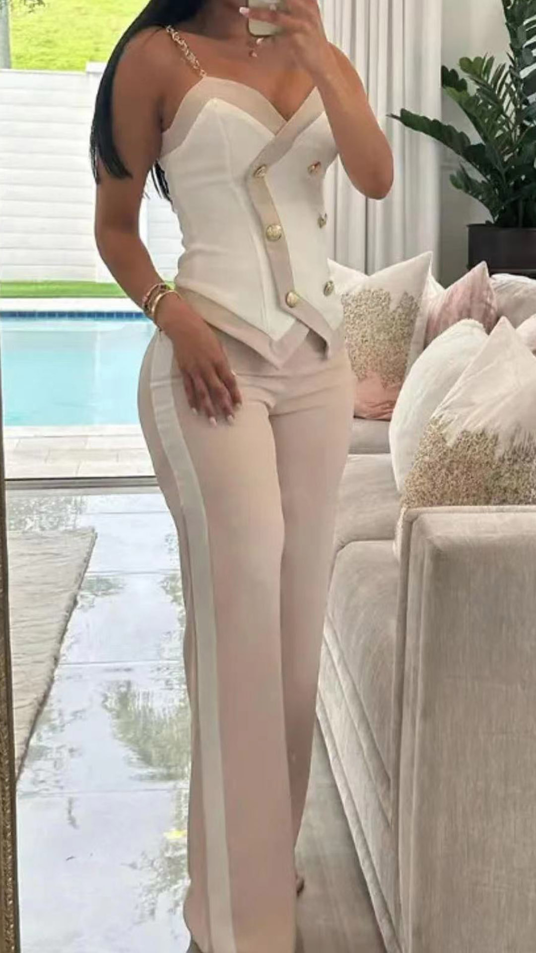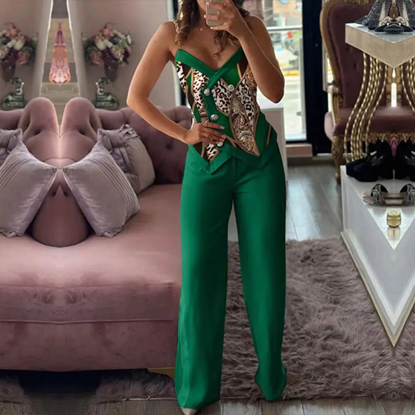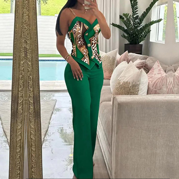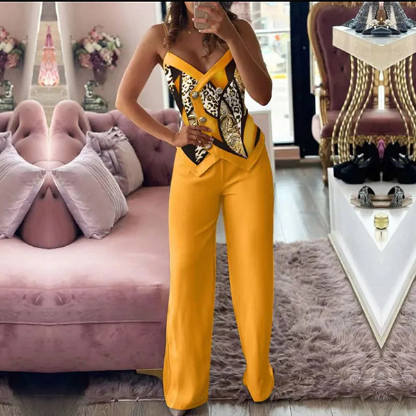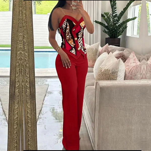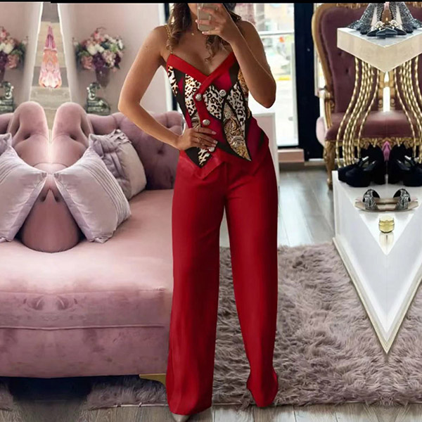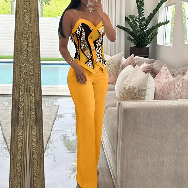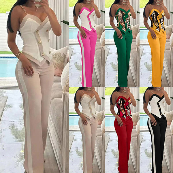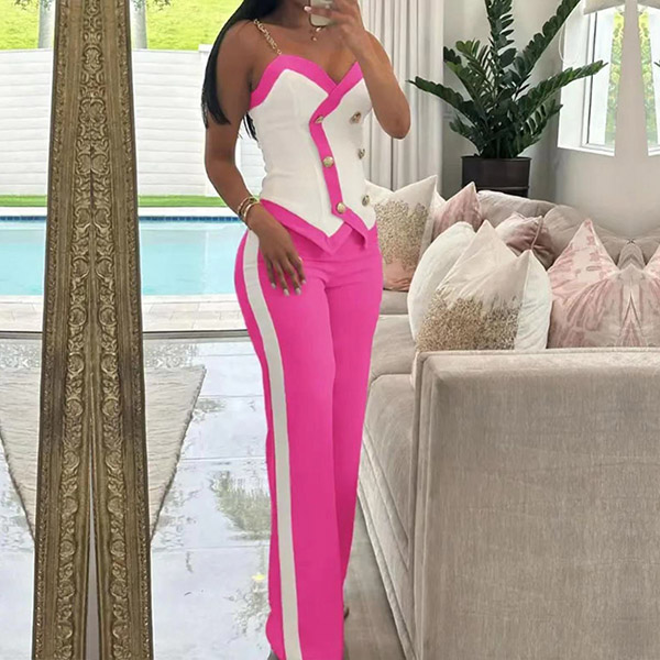 Fashion Two-piece Set Consist of Double-breast Cami Shirt and Straight-cut Pants