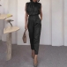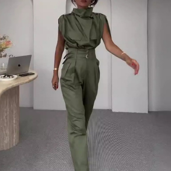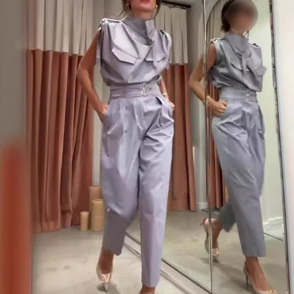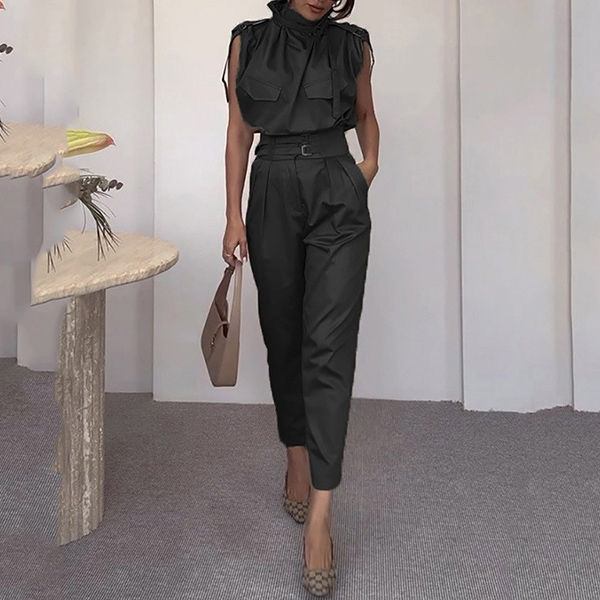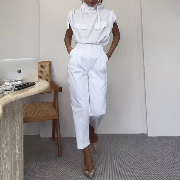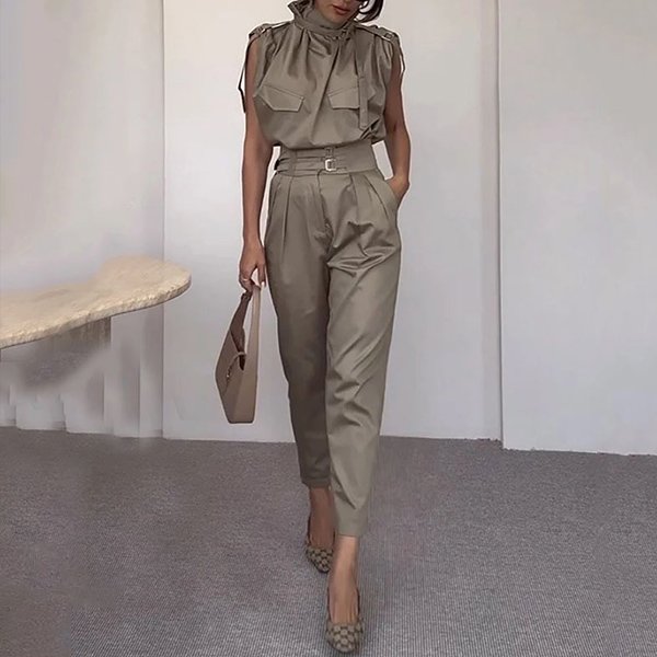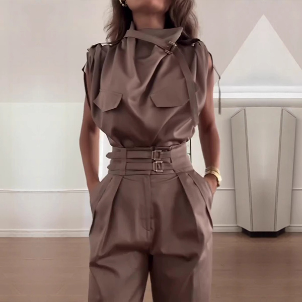 Elevate your style with this fashion two-piece set, featuring a sophisticated draped neck shirt and high-rise pants with a belt. The draped neckline adds a touch of elegance and sophistication, while the high-rise pants accentuate your waist and create a flattering silhouette. The included belt cinches the waist for a polished look. Perfect for both professional and social settings, this set offers versatility and style. Wanna have a try?
