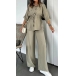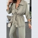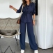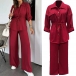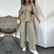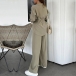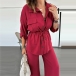 This versatile set is perfect for a chic and put-together look. The drawstring waist shirt adds a casual and relaxed vibe, while the straight-cut pants offer a sleek and tailored silhouette. Pair the set with heels for a polished and sophisticated look.