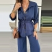 Fashion Two-piece Set Consist of Drawstring Waist Shirt and Straight-cut Pants