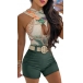 Fashion Two-piece Set consist of Floral Printed Halter Top and Solid Color Short with Belt