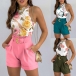 Fashion Two-piece Set Consist of Floral Printed Shirt and Shorts with Belt