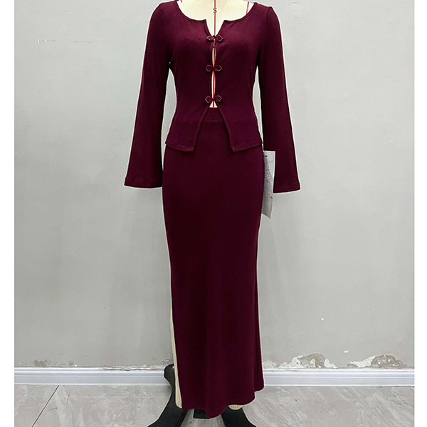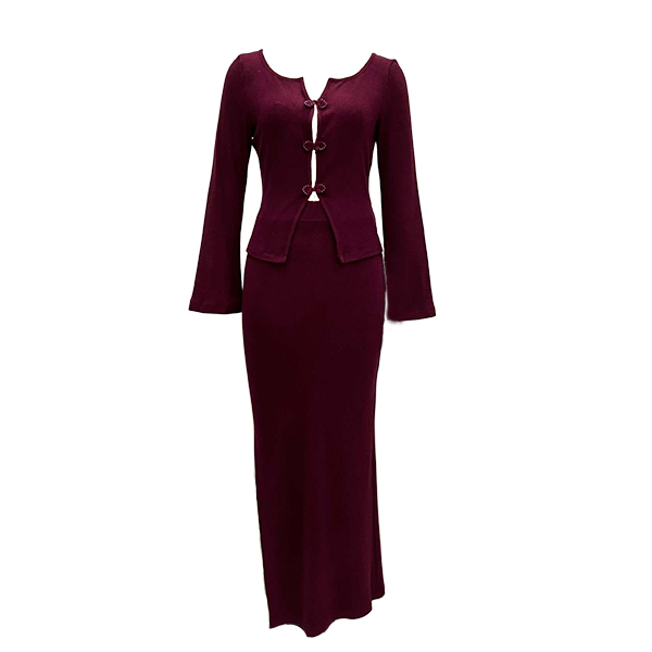 Fashion Two-piece Set Consist of Front Button Cardigan and Maxi Skirt
