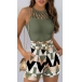 Fashion Two-piece Set Consist of Hollow Out Shirt and Floral Printed Shorts with Belt