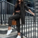This stylish two-piece set includes a longline sweatshirt jacket and matching sweatpants. The casual, athleisure-inspired design makes it perfect for everyday wear. Multi-colors avabile.