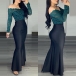 Fashion Two-piece Set Consist of Off-the-shoulder Lace Shirt and Maxi Skirt