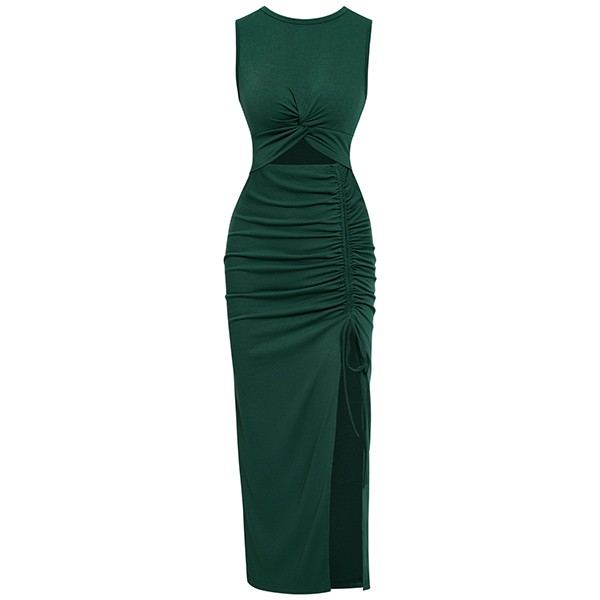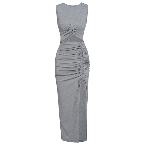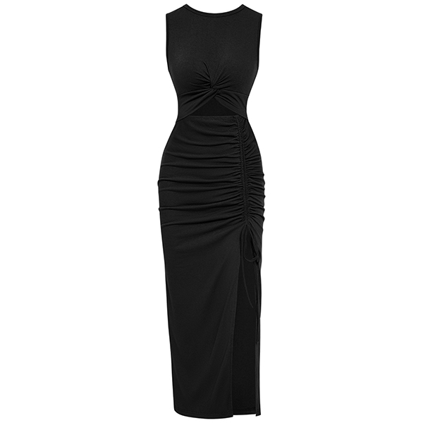 Fashion Two-piece Set Consist of Ruched Crop Top and Drawstring Slit Skirt