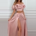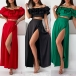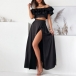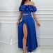 Fashion Two-piece Set Consist of Ruffled Off-the-shoulder Crop Top and Slit Skirt