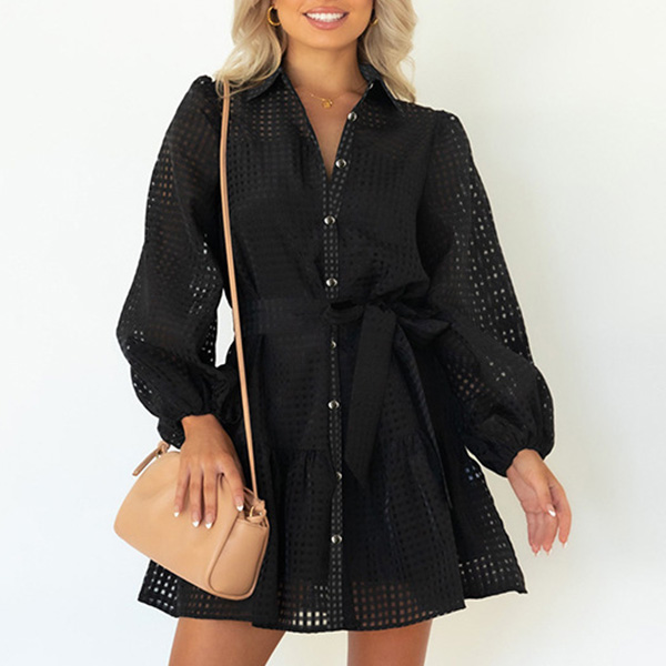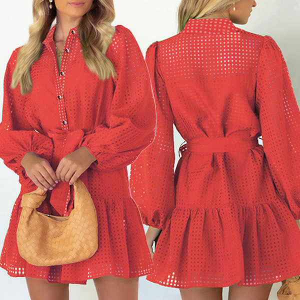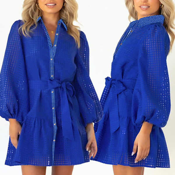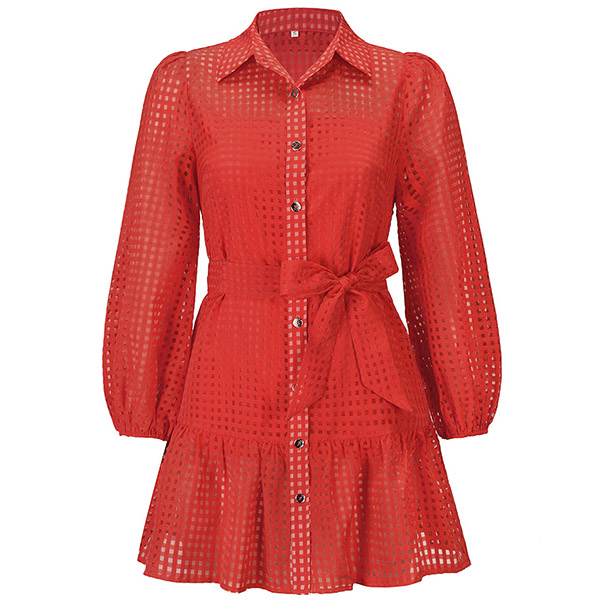 This fashion two-piece set is perfect for a daily wear! The semi-through dress is made of a lightweight, airy fabric that will keep you comfortable all day long. It features long sleeve, polo neck and self-tie waistline. Cami top in the same color accent. This set is available in four different colors, so you can choose the one that best suits your style.