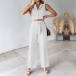 This versatile set can be dressed up with heels and statement jewelry for a night out, or dressed down with sneakers for a casual and comfortable look. It consists of a sleeveless crop top and straight-cut pants. Hope you like it.