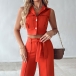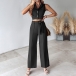 Fashion Two-piece Set Consist of Sleeveless Crop Top and Straight-cut Pants