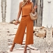This fashionable two-piece set includes a sleeveless shirt and pants, both made with a lightweight and breathable fabric for a comfortable fit.