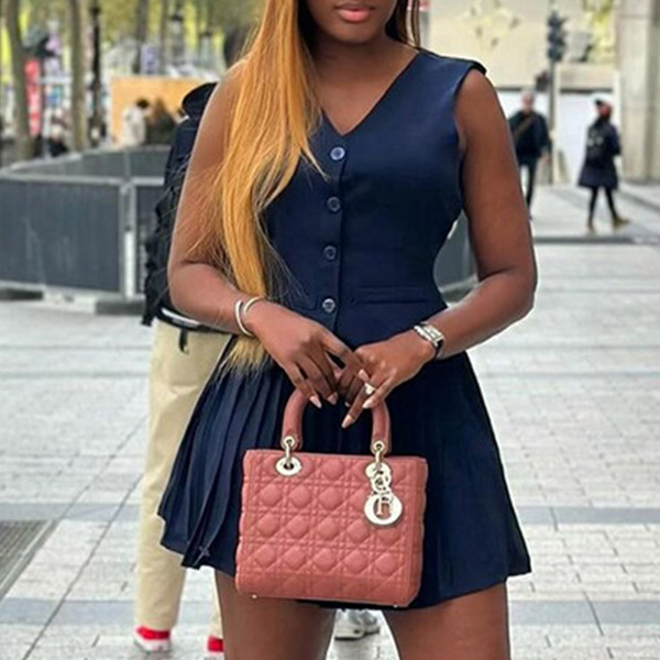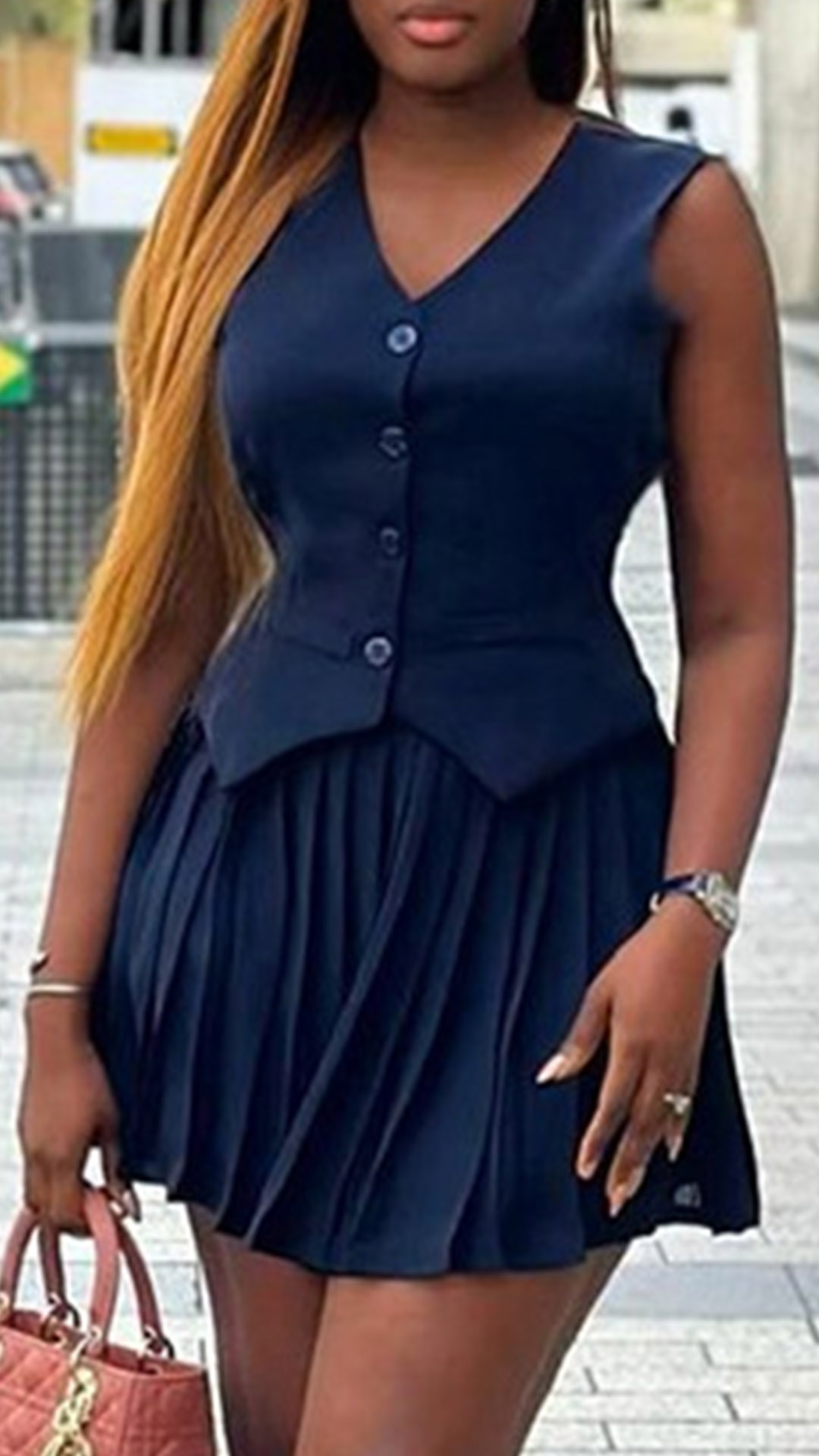 This is a stylish and versatile ensemble that combines a sleeveless vest and a pleated skirt for a chic and fashionable look.The versatility of this set allows you to mix and match with other pieces in your wardrobe, creating various outfits for different occasions.