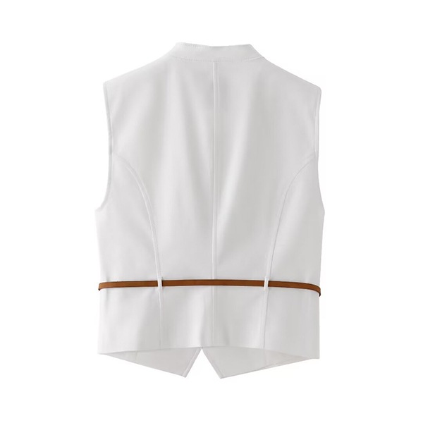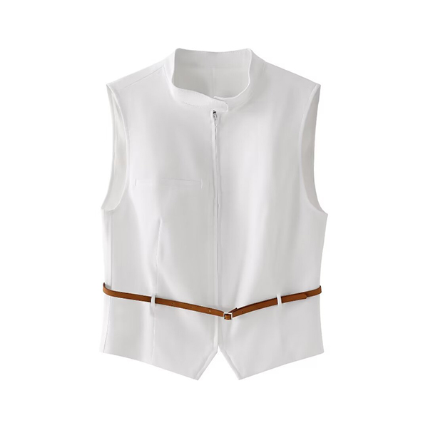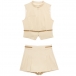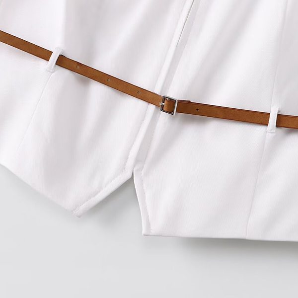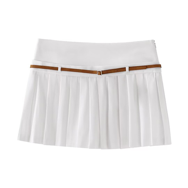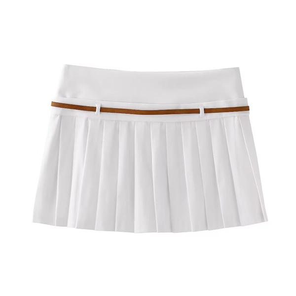Elevate your summertime style with this chic two-piece set. Consisting of a sleeveless vest with blet and a pleated skort with belt, this versatile outfit is perfect for any warm-weather occasion.