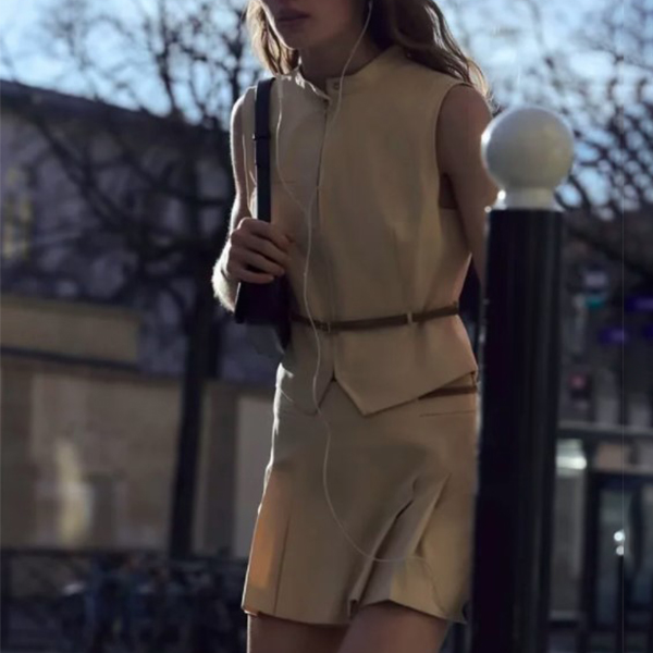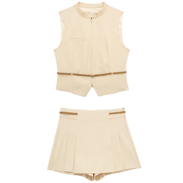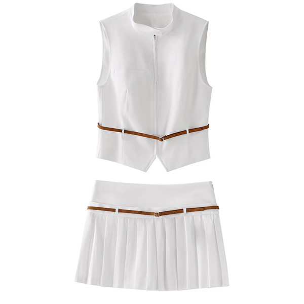 Fashion Two-piece Set Consist of Sleeveless Vest and Pleated Skort with Belt