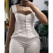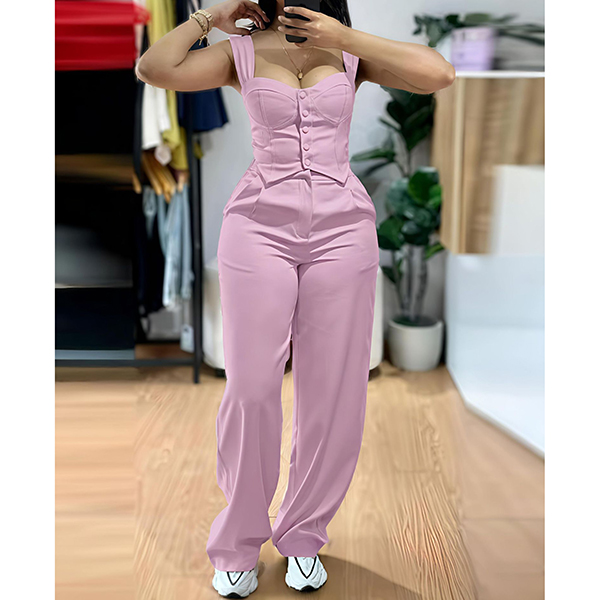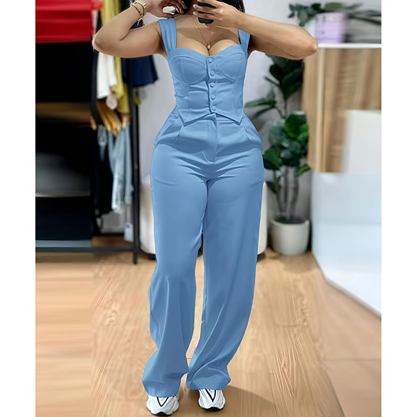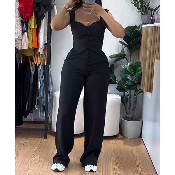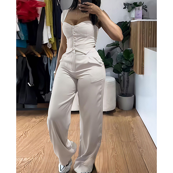 Fashion Two-piece Set Consist of Sweetheart Neckline Crop Top and Wide-leg Pants