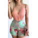 Fashion Two-piece Set Consist of V-neck Cami Bodysuit and Floral Printed Shorts