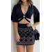 Fashion Two-piece Set Consist of V-neck Crop Top and Rhinestone Skirt