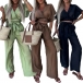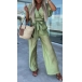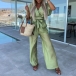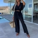This stylish and comfortable two-piece set features a V-neck crop top and wide-leg pants that add a touch of personality to your look. The comfortable fit and solid color make it perfect for a casual day or a night out with friends.