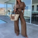 Fashion Two-piece Set Consist of V-neck Crop Top and Wide-leg Pants