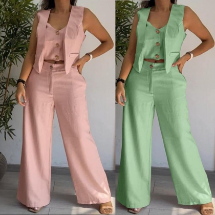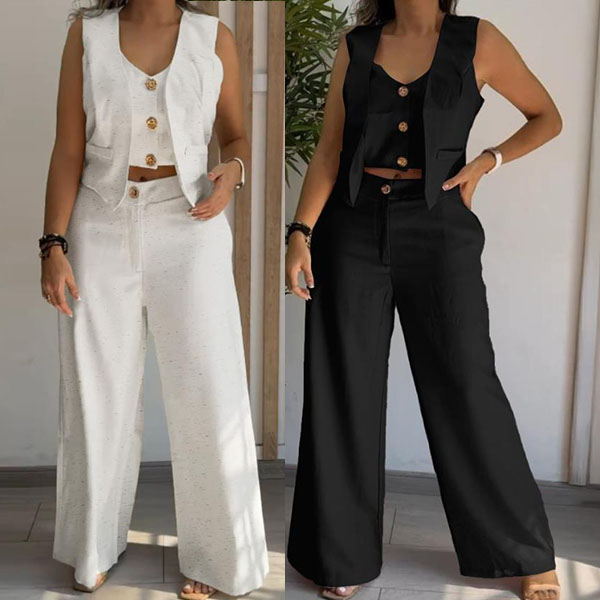 This Fashion Two-piece Set featuring a vest and straight-cut pants delivers sophisticated coordination with versatile appeal. The tailored vest creates a structured silhouette that flatters the upper body while adding a touch of professional polish. The matching straight-cut pants offer a timeless, clean line that elongates the legs and provides comfortable all-day wear. Wanna have a try?