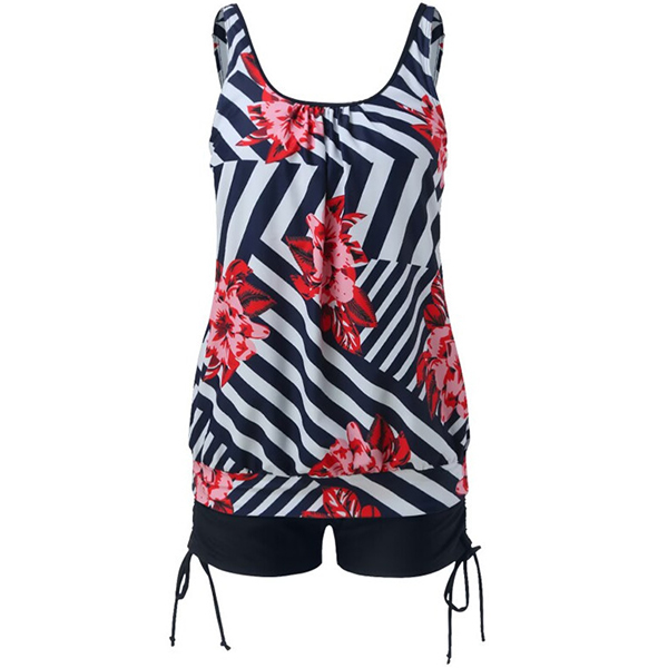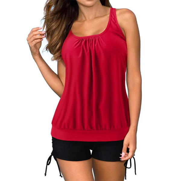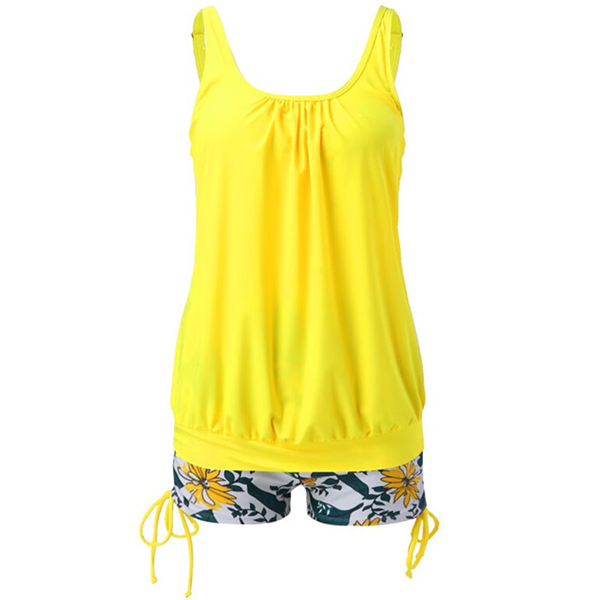 Fashion Two-piece Set Swimsuit Set Consist of Swimming Top and Side Drawstring Swimming Bottom