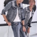 Fashion Unisex Old-washed Two-piece Denim Set Consist of Jacket and Jeans