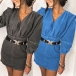 Fashion V-Neck 3/4 Sleeve Slim Fit Denim Dress