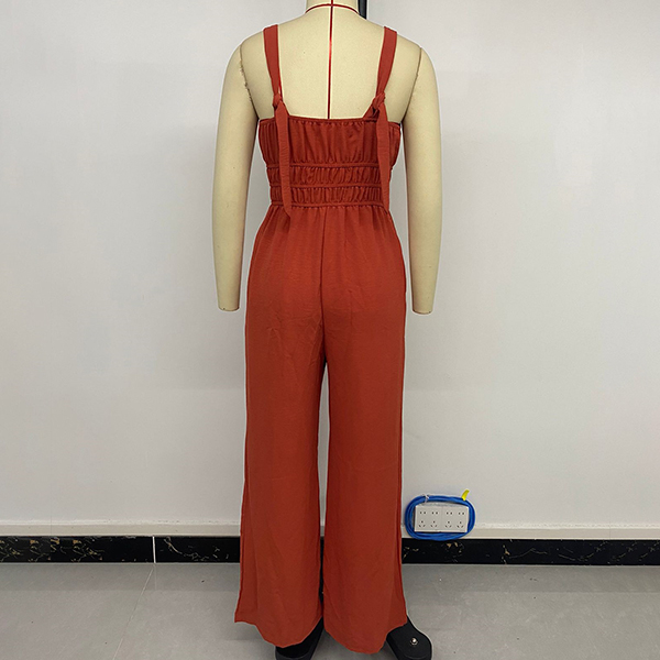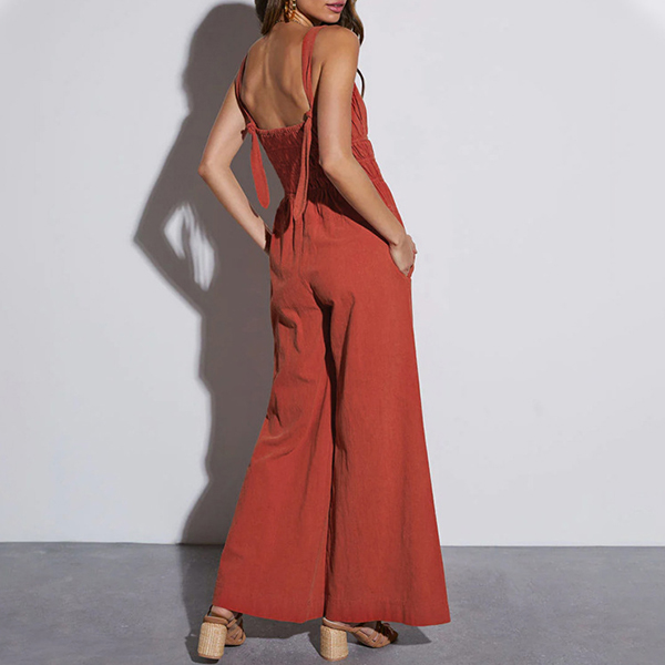 Fashion V-neck Backless High-rise Wide-leg Jumpsuit