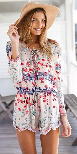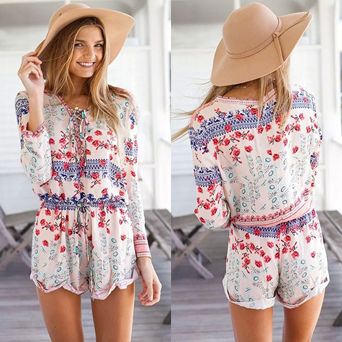 Do you want to leave a unforgettable memory in the seaside or beach? The playsuits has v-neck,
