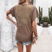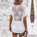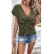 Fashion V-neck Cap Sleeve Front Drawstring Back Lace Spliced Shirt