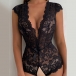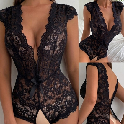 Fashion V-neck Cap Sleeve Lace Lingerie Bodysuit